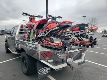 This bed is made for users by users. This bed is made for those who enjoy work and play. We made the bed six inches longer while retaining the OEM pulling points. This bed can haul two snowmobiles side by side and ATVs. On most long bed trucks you are able to haul a two seater side by side.